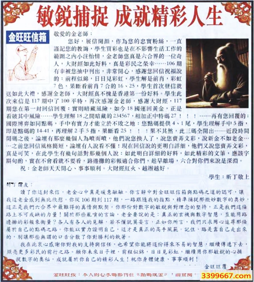063期:金旺旺信箱彩民推荐→→《敏锐捕捉 成就精彩人生》