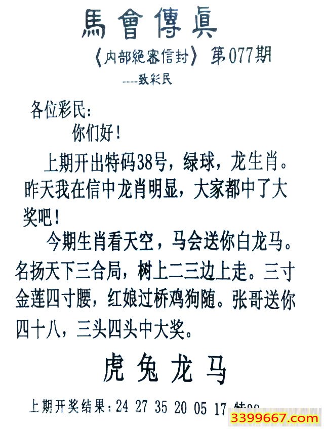 077期:首发推荐:≮馬會傳眞≯→(香港正版)