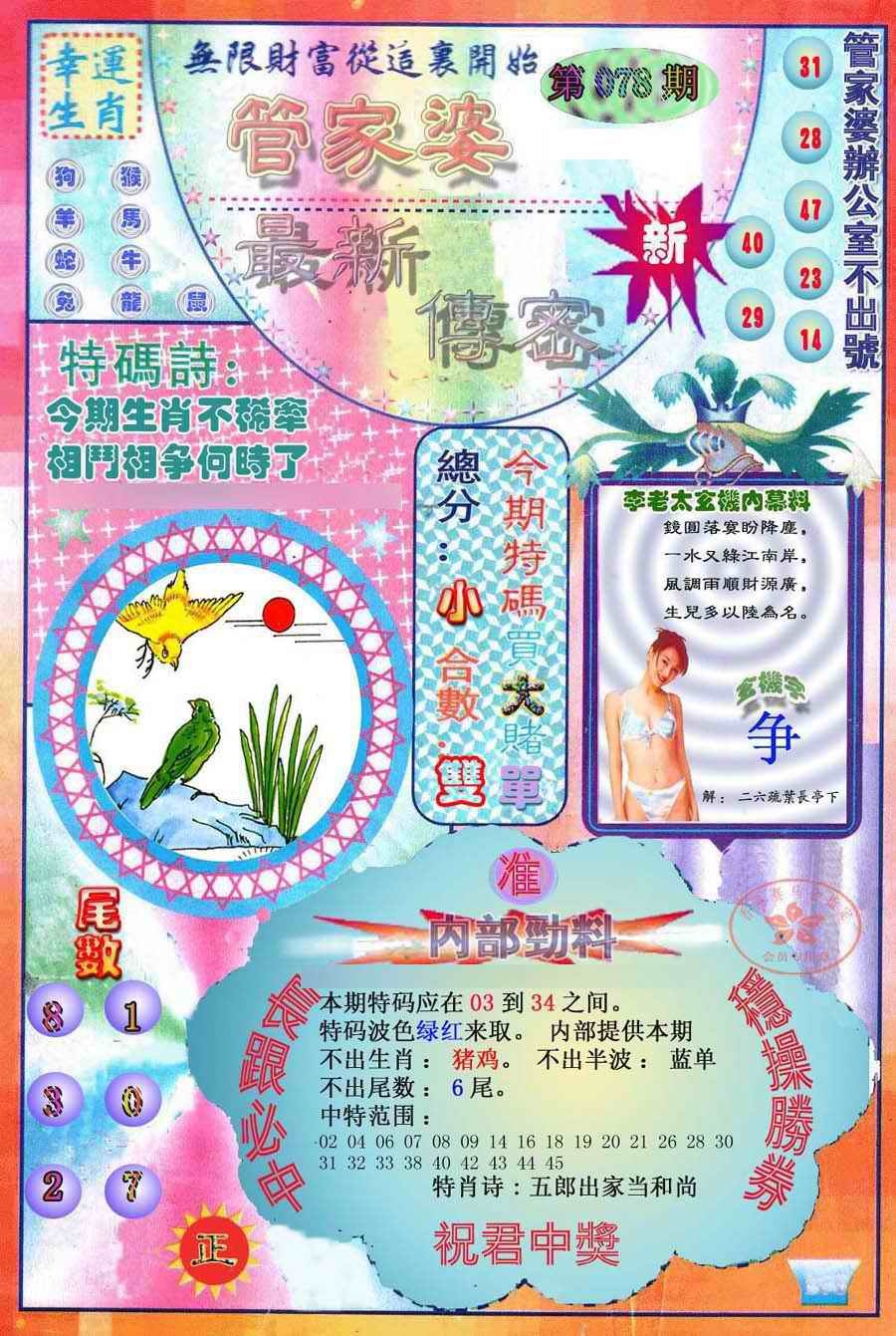 078期:最新管家婆传密