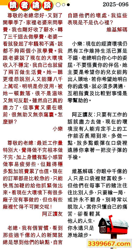 主题 :096期:彩民推荐〖貼信讀者論壇〗