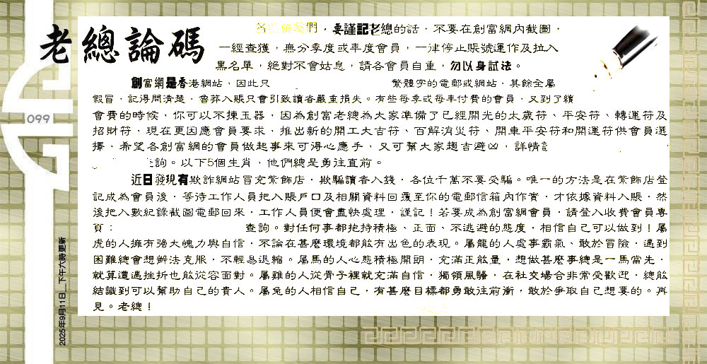 主题 :099期:六合皇金句/老总论码/萧公子/林大师/五行夺码/老总信箱截