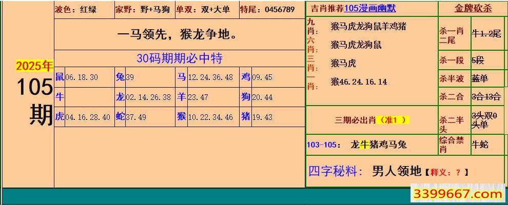 主题 :105期:小鱼儿30码期期中+幽默猜测