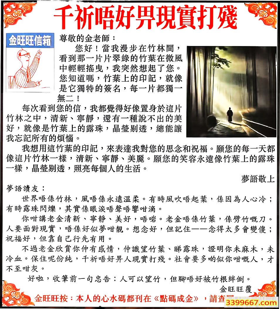 | 主题 :112期:金旺旺信箱彩民推荐→→《千祈唔好畀現實打殘》 |