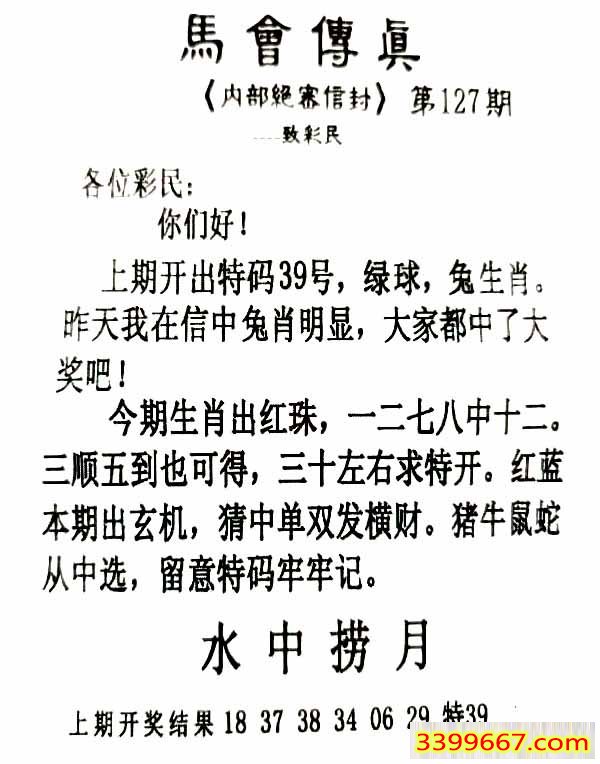 | 主题 :127期:首发推荐:≮馬會傳眞≯→(香港正版) |