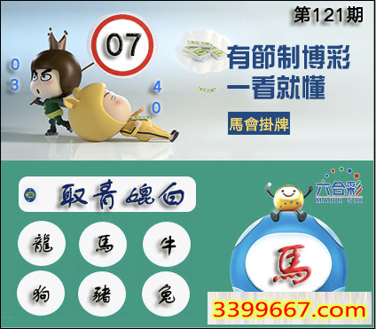 121期正版彩图挂:07 爆:马 挂牌成语:取青媲白 挂牌出肖:龙马牛狗猪兔