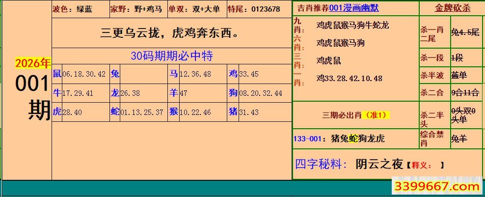 | 主题 :001期:小鱼儿30码期期中+幽默猜测 |