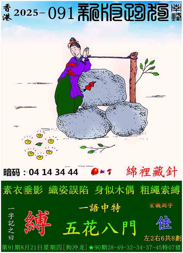 091期新版跑狗一字記之曰:【縛】