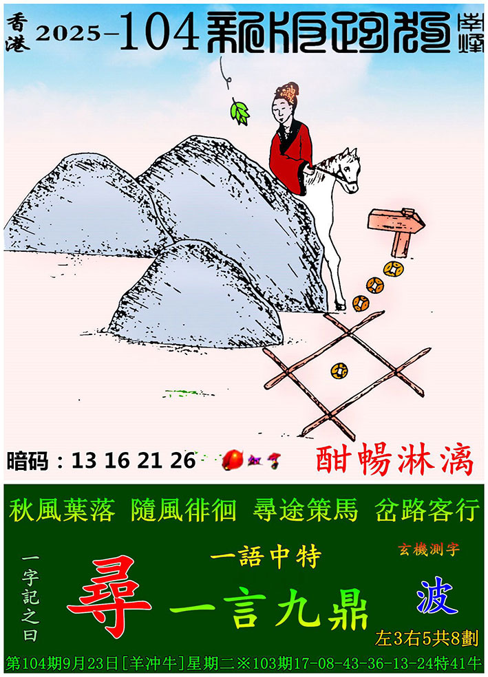 104期:新版跑狗一字記之曰【尋】 玄機測字:【波】